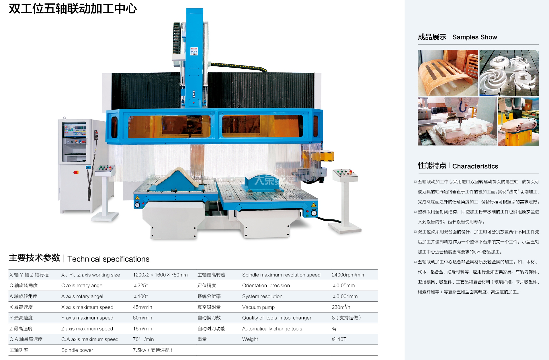 大榮偉業公司本著"品無止境,誠信為本,追求卓越"的原則,精心投入 CNC 數控機械行業,先后研發出:CNC 五軸聯動加工中心、數控板材加工中心、數控板式家具生產線幾大系列十幾個規格的產品。被廣泛應用于機械,科研院所,保麗龍加工、車輛內飾、厚片吸塑件、鋁板、輕金屬、絕緣材料、各類木板材、木器、木門、模具、化工、廣告、石材加工等不同領域,并遠銷世界各國。欣大榮公司借鑒國外技術,采用原裝進口優質配件,確保整機質量。企業已通過 ISO9001質量體系認證及 CE 認證。